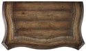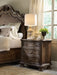 The Rhapsody Three Drawer Nightstand brings together classic style elements and a relaxed, rustic finish in an impassioned marriage of casual opulence. Exuberant design motifs such as an acanthus leaf molding around the base, column motifs on the edge of the case and ornate bun feet infuse the piece with emotion. The walnut-colored finish is inspired by the rustic nature of reclaimed woods in beautiful patinas. The three drawers include a cedar-lined bottom drawer. On the back is a convenient receptacle for use with electronic devices, and a light that illuminates from the bottom of the nightstand offers ambience.
