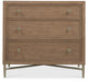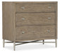 A stylistically versatile nightstand blending natural textures with a light-and-airy modern aesthetic, the Sonnet Nightstand has 3 self-closing drawers and a metal base, stretcher and tapered legs. Crafted of Quartered and Cathedral-Cut White Oak Veneers in a light earthen-toned finish, the nightstand has a cord clip on the back and satin-finished champagne-colored knobs.