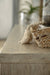 With a romantic French laundry and Shabby Chic appeal, the Ciao Bella Entertainment Console will star in your family room with its Flaky White finish with hand wire brushing over light and airy perforated doors. Crafted of Poplar and Hardwood Solids with Maple Veneers, the console has 3 sliding doors with one adjustable shelf behind each door, a ventilated back panel, 3-plug outlet and accommodates up to an 80- inch TV.