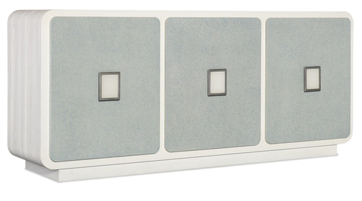 Hooker FurnishingsWith the allure of an impressionistic painting, the Mediterranean Entertainment Credenza has four white and blue ombre-colored textured door fronts...