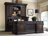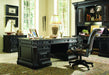 The perfect complement to the classic hunt country flair and pedigree design details of the Telluride desks, the Telluride Tilt Swivel Chair supports your best work with timeless design details like shaped and carved arms, a leather seat and back, nailhead trim and a wood trim in a black finish over cherry veneers with reddish brown rub-through. In comfort and versatility, the Telluride chair is on casters, tilts and swivels and has a pneumatic lift for adjustable seat height.