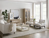 This 3-tiered, square-shaped end table in a soft taupe finish on lacquered burlap and oak veneers with dry-brushing has a tactile texture and organic chic appeal. The tiers can be used as shelves for display or storage.