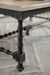 Elegant vintage turned spindle legs in black contrast with a Flaky White-finished top for a look that is farmhouse fresh and inviting. The practical rectangle shape makes this table livable and functional. Crafted of Poplar and Hardwood Solids with Maple Veneers.