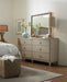 Crisp. Clean. Simple. Top your dresser, console or buffet with the soft modern Elixir Mirror to add style and character. Finished in a serene gray beige finish applied to lightly sand-blasted walnut veneer for an organic and textured look.