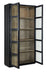 With the aura of a rustic mountain cottage, the Linville Falls Curio Cabinet has two wood-framed doors with seeded glass inserts. Crafted of Pine Veneers, the cabinet has a charred black finish achieved through Shou Sugi Ban, a Japanese technique that creates a look resembling burnt wood. The interior is finished in Mink, a soft smoked gray. There are three adjustable wood-framed glass shelves, one fixed wood-framed glass shelf and two puck lights in the top with a three-intensity touch switch on the right side back panel. Textured metal bar pulls have an antique pewter finish.