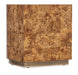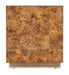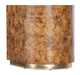 Earthy and intriguing, the Burlesque Accent Table is crafted of Mappa Burl Veneers in a tiled pattern over a silhouette that has one flat side and one rounded side to create a half-oval shape. Measuring 24 inches wide by 22 inches deep, it has a warm golden finish and gold plinth base.