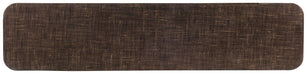 With a unique silhouette, rich finish and metal accents, the Edmun Sofa Table is a striking addition to any living space. Featuring a rectangle shape with rounded edges, the table is crafted of Maple Veneers in a dark wood finish with metal caps. One fixed shelf in the center.