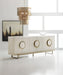 Serene and stylish, the Noelle Credenza sets a relaxing and refined tone for any space. The wood credenza has a cream finish with dramatic gold round pulls and base and a white marble top. Accommodating up to an 80-inch TV, the six doors with soft close hinges have one adjustable shelf behind the left and right pairs of doors and two adjustable ventilated wood shelves behind the center set of doors. Ventilated back panel and one 3—plug outlet.