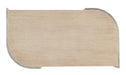 Offering a two-tone finish in a shaped design contrasting Oak Veneers in a light wood finish with a shimmery silver-finished base, the Silverfrost Cocktail Table has a calming contemporary style. One self-closing drawer with silver-finished bar pull.