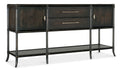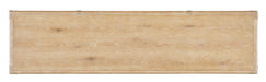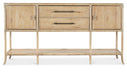 With a laid-back island vibe and mix of organic materials, the Retreat Pole Rattan Sideboard is crafted of Oak and Maple Veneers with rope accents at the joints. The light sand-colored finish is transparent by design to reveal the unique grain patterns of the wood veneer. Featuring ample storage, the sideboard has two doors with magnetic door catches with one adjustable shelf behind each door. There are two self-closing drawers, and the top drawer has a removable felt liner and removable silverware tray. The lower fixed shelf is ideal for display or storage. Soft pewter bar pull and “T” pulls on the doors add a distinct accent.