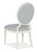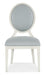 The Martinique Chair has a vintage scalloped oval back and a calming palette pairing the textured soft white Shell finish on the wood frame with the blue-gray Cloud fabric on the upholstered back and seat. Bringing the relaxed aura of the outside in, the versatile chair works well in the kitchen, dining room, office or bedroom. The performance fabric is a blend of Rayon, Linen, Cotton and Polyester.