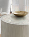 Bring the beauty of nature in with the exquisite and organic Swale Round Side Table, combining a textured gray finish over the wood base with a Honed Marple Veneer top with intricate vein patterns.
