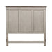 Panel headboard features heavy wire brushing and saw marks, finished in a two-tone weathered linen with a dusty taupe top cap. Headboard can stand alone with Hollywood frame. Pair with the footboard and rails for a complete bed.