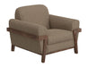 Wooden Frame & Base, Armchair. Introducing our captivating Loft Brown Collection, where traditional design seamlessly merges with mid-century modern details in this stunning transitional piece. With its distinctive exposed pine wooden legs and frame, retro-inspired rolled arms, and meticulous craftsmanship, this collection features solid wood and 15mm-thick, 5-layer plywood construction, ensuring both the strength and durability of the frames.