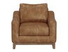 Wooden Frame & Base, Armchair. The Olivo collection seamlessly blends clean lines with a harmonious fusion of both organic and geometric shapes, offering unparalleled comfort for your space with its mid-century modern style, marked by subtle curves on padded armrests.