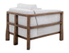 Wooden Frame & Base, Armchair. Transform your living space with this stunning wooden-framed armchair, which perfectly combines craftsmanship and comfort. The Roots Collection features a cushioned back and is upholstered in a durable, textured white fabric that provides plush support and an elegant touch. What truly sets this collection apart is its beautifully designed, armrests, enhancing its aesthetic appeal and ergonomic comfort. Redefine your space with furniture that makes a statement because every home deserves a touch of artistry.