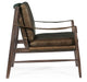 A vintage British Colonial vibe distinguishes the Sabi Sands Sling Chair, featuring a dark wood frame, leather sling arms and nailhead trim. The Sabi Sands is upholstered in the Legendary Taupe aniline top-grain leather.