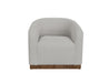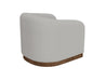 Wooden Frame & Base, Armchair. The Suomi Collection, distinguished by its flowing form, embodies the Zen-inspired Japandi style. This armchair's minimalist design is harmoniously complemented by its wooden base crafted from pine wood, with its wraparound back seamlessly merging into rounded arms, creating a cradle for an exceptionally thick and comfortable cushioned seat