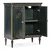 Capturing the vintage charm of the coastal South, the Charleston Two-Door Accent Chest has two doors with soft-close hinges, decorative fretwork accents along the edges, and regionally-inspired handpainting and highlighting on the door fronts. Crafted of Maple Veneers, the cabinet is finished in a weathered interpretation that adorns the trim, shutters and doors across the historic district of Charleston. Loop pull hardware is in an antique pewter color. One adjustable shelf behind the doors.