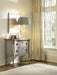 Graceful and romantic, this enchanting soft gray chest is offered in a vintage French style with exquisite design details like gold leafing, shapely cabriole legs and a gold-leaf ornamental keyhole escutcheon on each drawer. Crafted of Poplar Solids and Gold Leaf, it features two drawers and is a compact 30 inches wide.
