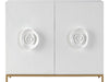An exquisite take on a storage piece, the Fleur Hall Chest delights with a white textured body, a subtle golden base, rose-inspired decorative pulls and an abundance of functional interior space.