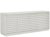The Shoreline Credenza features distinctive louvered doors that evoke coastal shutters. This credenza offers ample interior storage with adjustable shelves and wire management, making it perfect for dining rooms or media spaces in your coastal-inspired home.