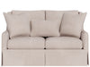 The Hudson Loveseat is a delightful comfort piece designed with a tall back, understated armrests a refined skirting detail.