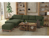 Wooden Frame & Base, Sectional. With its chunky, wide silhouette, the Samba collection infuses your living room with a touch of traditional charm. Supported by a sturdy frame crafted from solid pine wood, it rests gracefully on low-profile block feet with a rich brown hue.