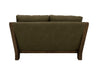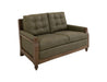 Wooden Frame, Upholstered Loveseat. Transform your living space with this stunning wooden-framed loveseat, which perfectly combines craftsmanship and comfort. The Xel-Ha II Collection features tufted back cushions upholstered in a green leather-like fabric, providing plush support and an elegant touch. The decorative throw pillows add a charming and warm accent to the overall design.