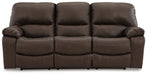 Focus on function. This practical reclining sofa balances contemporary character and irresistible comfort. Its affordable, expertly matched leather and faux leather upholstery keeps your style up to speed without breaking the bank.