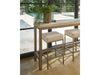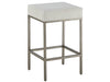 The Oasis Stool, upholstered in Nomad Snow fabric and 26-inches in height, create a perfect spot for dining, working, or entertaining in your coastal home.