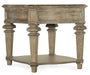 Old World charm and classic design elements like shaped and fluted legs are updated with a relaxed rustic finish with the look of natural wood bathed in sunshine in the Castella End Table. Crafted of Pecan, Quartered Walnut, Black Walnut, Ash and Maple Veneers, the table exudes a livable resort feeling. One drawer and one fixed shelf.