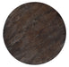 Globally inspired and artistically crafted, the Carved Round Commerce & Market table is made of Mango Wood and Iron in a dark wood finish, with gold metal legs and a carved tribal motif around the edges.