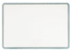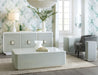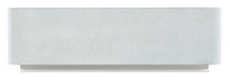 Serene and stylish with a spa-like color scheme, the modern Atlantis Table has a rectangle shape, rounded corners, a painted tempered glass top, raffia-wrapped exterior and white plinth base. The top is painted in a creamy white tone, and the raffia wrap is in a pale blue tone inspired by Caribbean beaches.