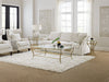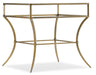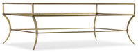 Lighter than air with a dash of bling, the delicately-scaled Larueng combines a hammered iron frame in a gold finish with a tempered glass top.