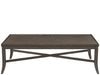 The Cocoa Cocktail Table features elegant beaded edge detailing and a distinctive curved leg design that adds graceful movement to a substantial rectangular form. Finished in signature Cocoa oak, this piece provides generous surface space while maintaining refined neoclassical proportions.