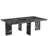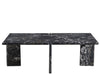 The Magnus Cocktail Table stands as a bold centerpiece, crafted from deep black Golden Portoro Marble. Its robust, sleek silhouette commands attention, with slab-like legs that accentuate an intricate play of stone and form. This table is a statement of elegance and strength, perfectly blending luxurious materials with a commanding presence.