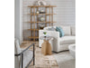 The Riverine Accent Table displays a stunning combination of a smooth marble top and an angled, oak-finished pedestal base, creating the perfect punctuation to a favorite chair or sofa.