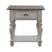 Create a relaxed interior look that works for coastal styles, country, and cottage interiors with the Ocean Isle drawer end table. Crafted of rubberwood solids and New Zealand pine veneers, this piece features a slate finish with weathered pine, one fully stained drawer with complete dust proofing to protect contents, wooden drawer glides, and is accented by satin nickel cup hardware. Users can enjoy the convenience of added storage with the bottom shelf, perfect for storing magazines, board games, or extra throw blankets.