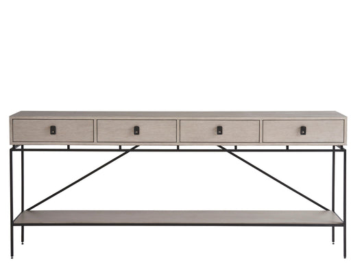 Universal FurnitureThe Barber Console stands with poise in its Rolling Fog finish, its form punctuated by striking metal hardware. Metal legs and detailing infuse the...