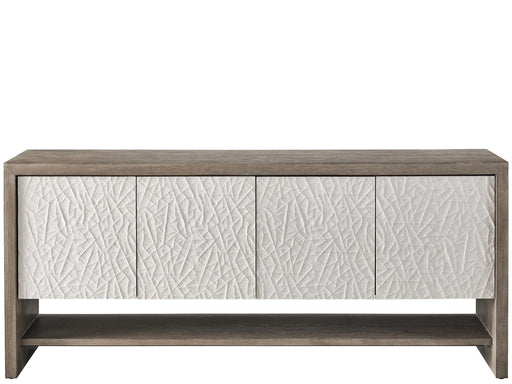 Universal FurnitureAdjustable shelves behind geometric-patterned doors offer ultimate storage flexibility.Product Features 4 Doors w/ Shattered Earth finish 2 Adjusta...