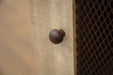 - Sliding barn-style door with Iron mesh on door panel offer convenience and rustic appeal.