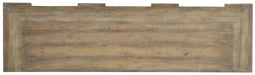 The soaring design of the Castella Credenza will lift your spirits and elevate the atmosphere. Romantic scroll motifs around the apron, column motifs on the case front and an acanthus leaf carving around the base give a classical pedigree to the piece. The Antique Slate finish is luminous with the look of natural wood bathed in sunshine, making the credenza fresh for today's relaxed interiors. The multi-functional credenza has three drawers and a drop-front center drawer and three doors with one adjustable wood shelf behind each.