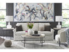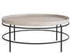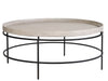 Anchoring any room it graces, the Coalesce Cocktail Table is a focal point of craftsmanship in a Rolling Fog finish, adorned with tasteful metal accents. Its robust presence centers the interior aesthetic with a seamless blend of form and function.