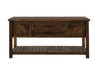 2 Drawer, 2 Door, Sofa Table. The Dutton Occasional Tables Collection is a masterpiece of country cottage style, symbolizing stability and rootedness in an ever-changing world. Designed with both style and utility in mind, these tables feature visible wood grain and natural knots that add texture and authenticity to each piece. The rich brown stain highlights the beauty of the wood while enhancing its rustic and timeless appeal. The sofa table features two spacious drawers and two doors. This clever design enhances functionality while keeping the space organized. The Dutton Occasional Tables Collection complements a range of interior styles, bringing a touch of rustic sophistication to any setting.