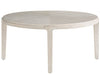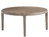 The Bunching Cocktail Table offers versatile style with its nesting design. Finished in a warm Boulder medium, the round table top features a subtle radial pattern, while the upholstered pouf tucks neatly underneath, providing extra seating or a surface for display. This set brings a blend of functionality and refined elegance to your living space, perfect for flexible arrangements and effortless entertaining.