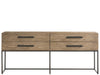 The Metal Base Console blends industrial chic with natural warmth. Featuring a sleek metal base and a warm finish, its clean lines and four spacious drawers offer both style and functionality. This console adds a modern, architectural touch to your entryway, living room, or dining area, perfect for those seeking a blend of contemporary design and practical storage.