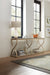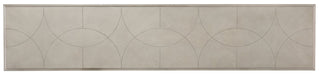 From the champagne silver metal stretchers forming a graceful X shape to the serene gray beige wood finish, the Elixir Console Table is an expression of soft modern artistic style that exudes simplicity and well-being.