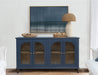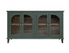 4 Glass Door Console. The Genova consoles crafted from lightly distressed pine and okume wood provide a contemporary twist on mid-century aesthetics, with vibrant colors perfect for complementing monochromatic spaces or adding a splash of vividness. They are guaranteed to be showstoppers in any room.