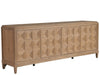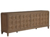 The Entertainment Credenza is a stunning blend of form and function. Its warm wood finish and intricately carved details create a sophisticated and timeless look. The ample storage space and cable management system make it a practical and stylish addition to any living